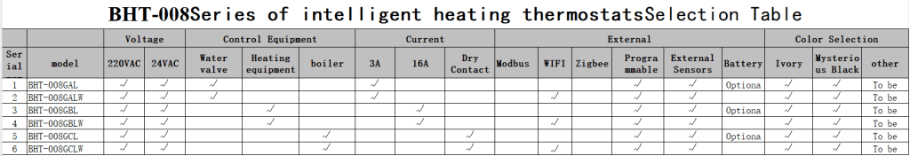 BHT-009 Series Intelligent Heating Thermostat $32.40 – $39.78BHT-008 Series Intelligent Heating Thermostat